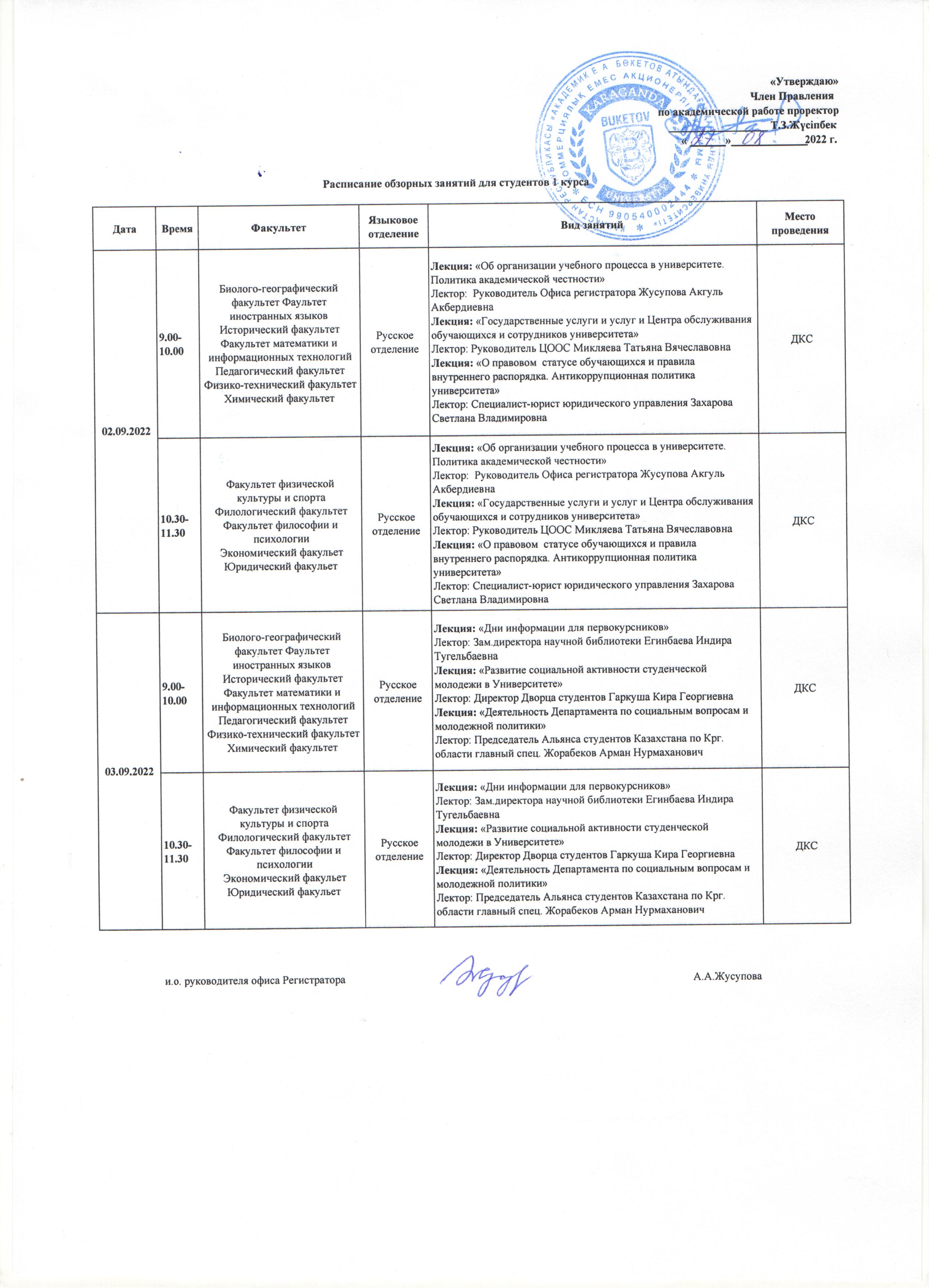 Расписание обзорных занятий для студентов 1 курса