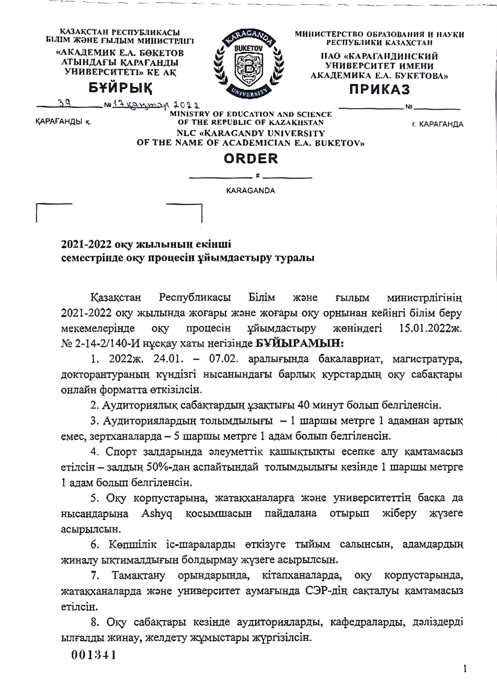 2021-2022 оқу жылының екінші семестрінде оқу процесін ұйымдастыру туралы