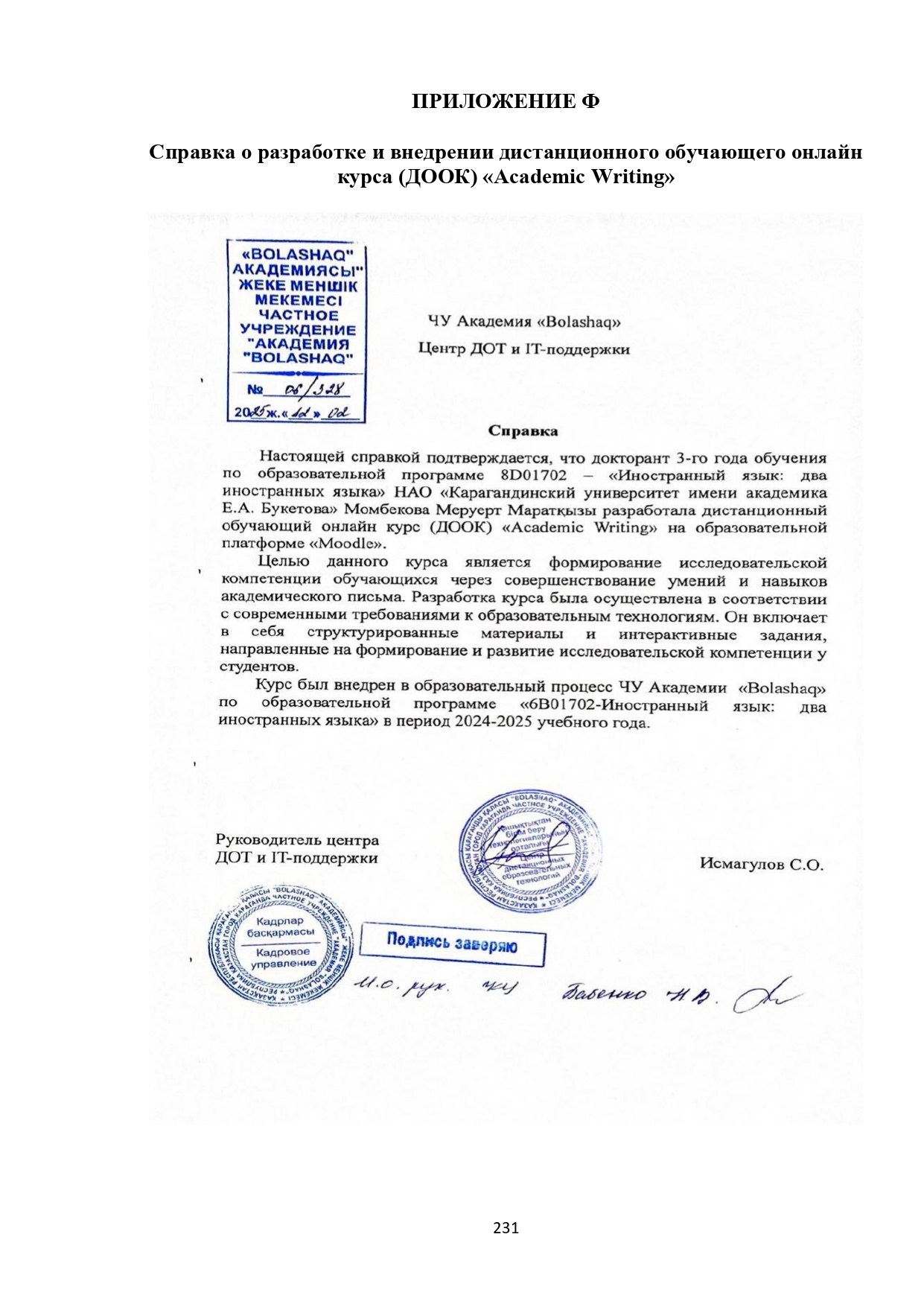 Саржанова Ғалия Байжұмақызы-PhD, қауымдастырылған профессор, КЕАҚ «академик Е. А. Бөкетов атындағы Қарағанды ұлттық зерттеу университетінің" қосымша білім беру факультетінің деканы, +7-7212-770438, +7 705 888 3672, galiya008@mail.ru